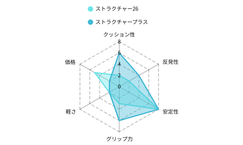 | スピード練習に向いているのは | ストラクチャープラス | 軽量&反発性があり、テンポアップしやすい |